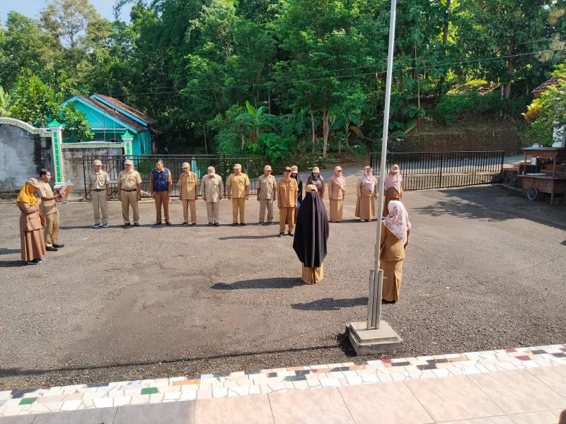 Personil yang bertugas apel kali ini adalah Ari Iswanto sebagai pembaca doa, Yasinta Ratnawati sebagai ajudan dan Septi Wahyuningih sebagai pembawa acara. Apel diikuti oleh pamong, staf, dan THL Kalurahan Putat .