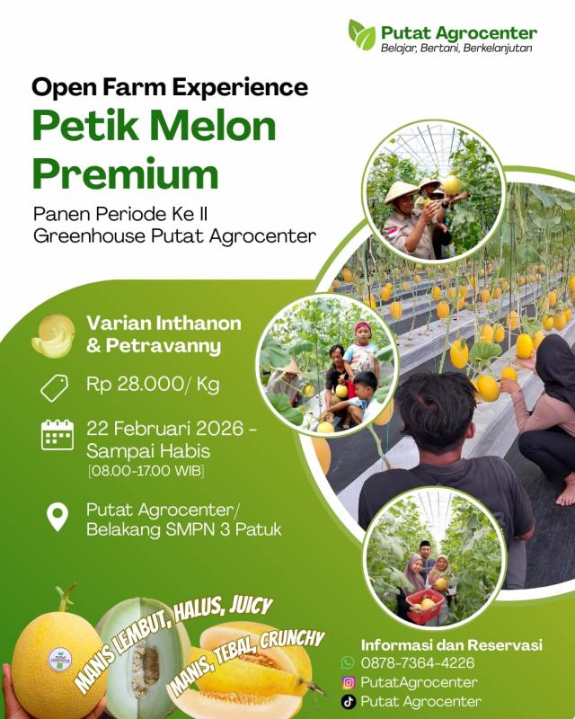 Informasi lebih lanjut maupun reservasi bisa menghubungi nomor 0878 7364 4226. Ayo segera datang ke Greenhouse Putat Agrocenter. Nikmati manisnya melon untuk berbuka puasa. [YN]